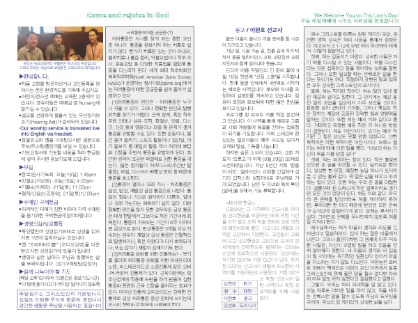 2019-09-15 교회 주보 페이지 정보 작성자 System Operator 댓글 0건 조회 5,713회 작성일 19-09-15 11:32 목록 본문 2019-09-15 교회 주보입니다. 이전글2019-09-22 교회 주보 19.09.22 다음글2019-09-08 교회 주보 19.09.11 댓글 0 댓글목록 등록된 댓글이 없습니다. 목록
