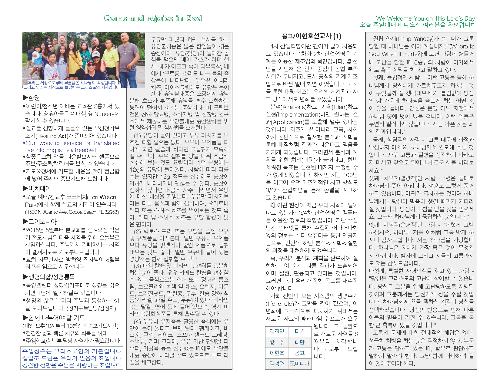 THE Good Korean Church of C&MA 3800 Lake Underhill Rd. Orlando.FL32803 / Tel: