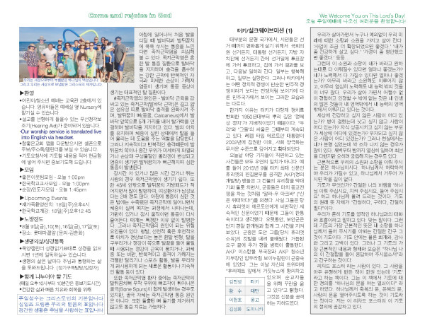 2019-08-04 교회 주보 페이지 정보 작성자 System Operator 댓글 0건 조회 5,642회 작성일 19-08-05 04:45 목록 본문 2019-08-04 교회 주보입니다. 이전글2019-08-11 교회 주보 19.08.13 다음글2019-07-28 교회 주보 19.07.29 댓글 0 댓글목록 등록된 댓글이 없습니다. 목록