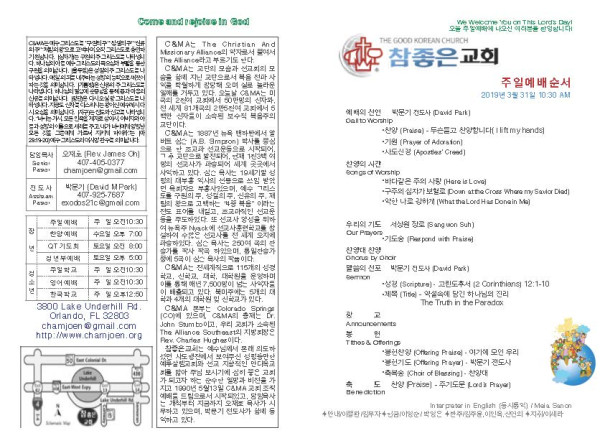 2019-03-31 교회 주보 페이지 정보 작성자 System Operator 댓글 0건 조회 5,797회 작성일 19-04-07 12:08 목록 본문 2019-03-31 교회 주보입니다. 이전글2019-04-07 교회 주보 19.04.08 다음글2019-03-24 교회 주보 19.03.25 댓글 0 댓글목록 등록된 댓글이 없습니다. 목록