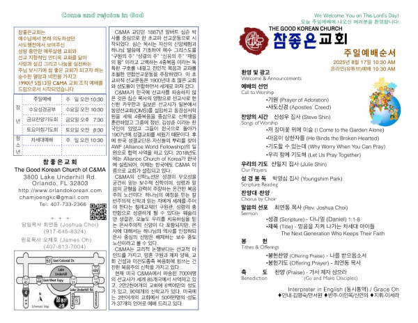 2025-08-17 참좋은 교회 주보 페이지 정보 작성자 참좋은교회 댓글 0건 조회 812회 작성일 25-08-17 15:34 목록 본문 2025-08-17 참좋은 교회 주보입니다. 이전글2025-08-24 참좋은 교회 주보 25.08.24 다음글2025-08-10 참좋은 교회 주보 25.08.10 댓글 0 댓글목록 등록된 댓글이 없습니다. 목록