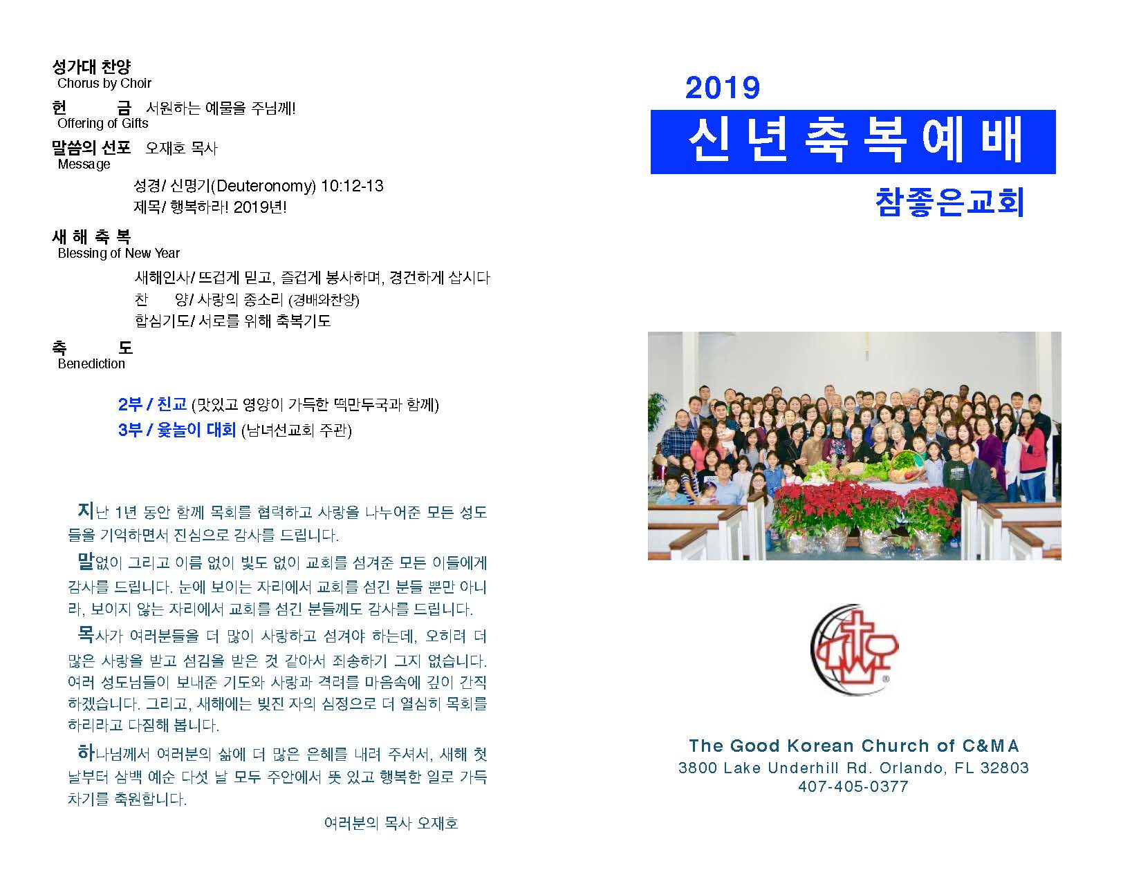THE Good Korean Church of C&MA 3800 Lake Underhill Rd. Orlando.FL32803 / Tel: