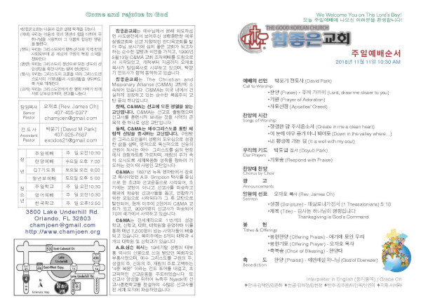 2018-11-11 교회 주보 페이지 정보 작성자 System Operator 댓글 0건 조회 5,715회 작성일 18-11-12 11:44 목록 본문 2018-11-11 교회 주보입니다. 이전글2018-11-18 교회 주보 18.11.18 다음글2018-11-04 교회 주보 18.11.04 댓글 0 댓글목록 등록된 댓글이 없습니다. 목록