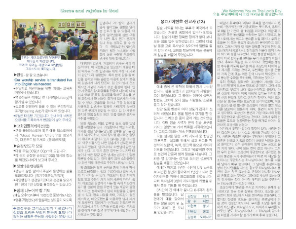 2018-09-23 교회 주보 페이지 정보 작성자 System Operator 댓글 0건 조회 5,654회 작성일 18-09-23 13:53 목록 본문 2018-09-23 교회 주보입니다. 이전글2018-09-30 교회 주보 18.10.09 다음글2018-09-16 교회 주보 18.09.16 댓글 0 댓글목록 등록된 댓글이 없습니다. 목록