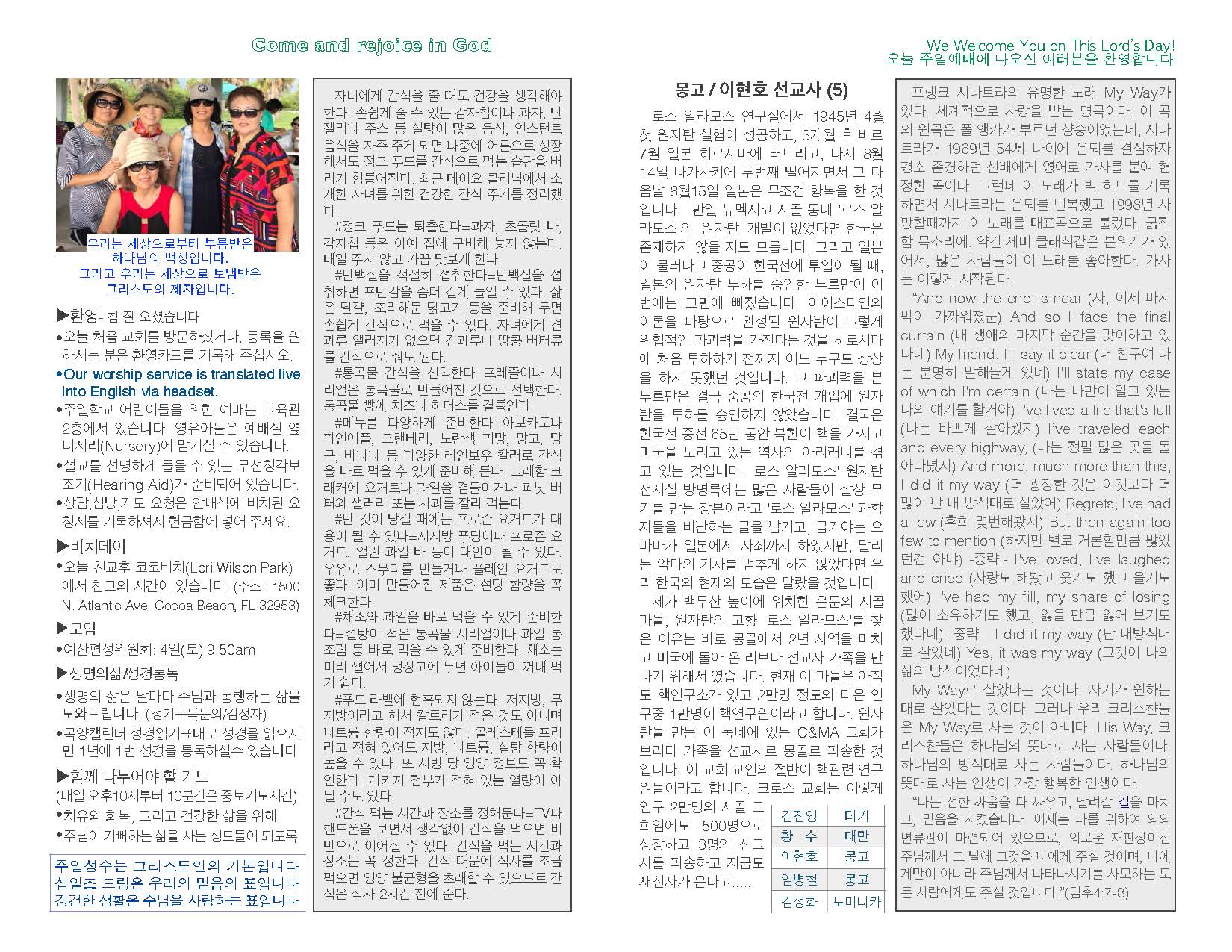 THE Good Korean Church of C&MA 3800 Lake Underhill Rd. Orlando.FL32803 / Tel: