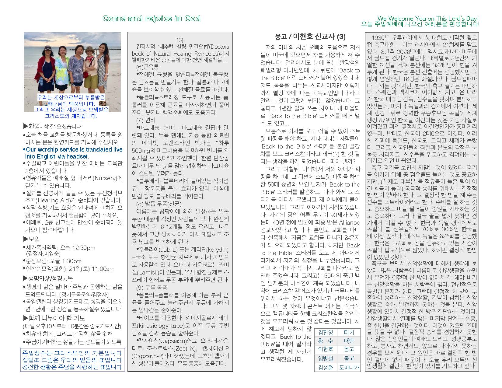 예배순서 및 광고