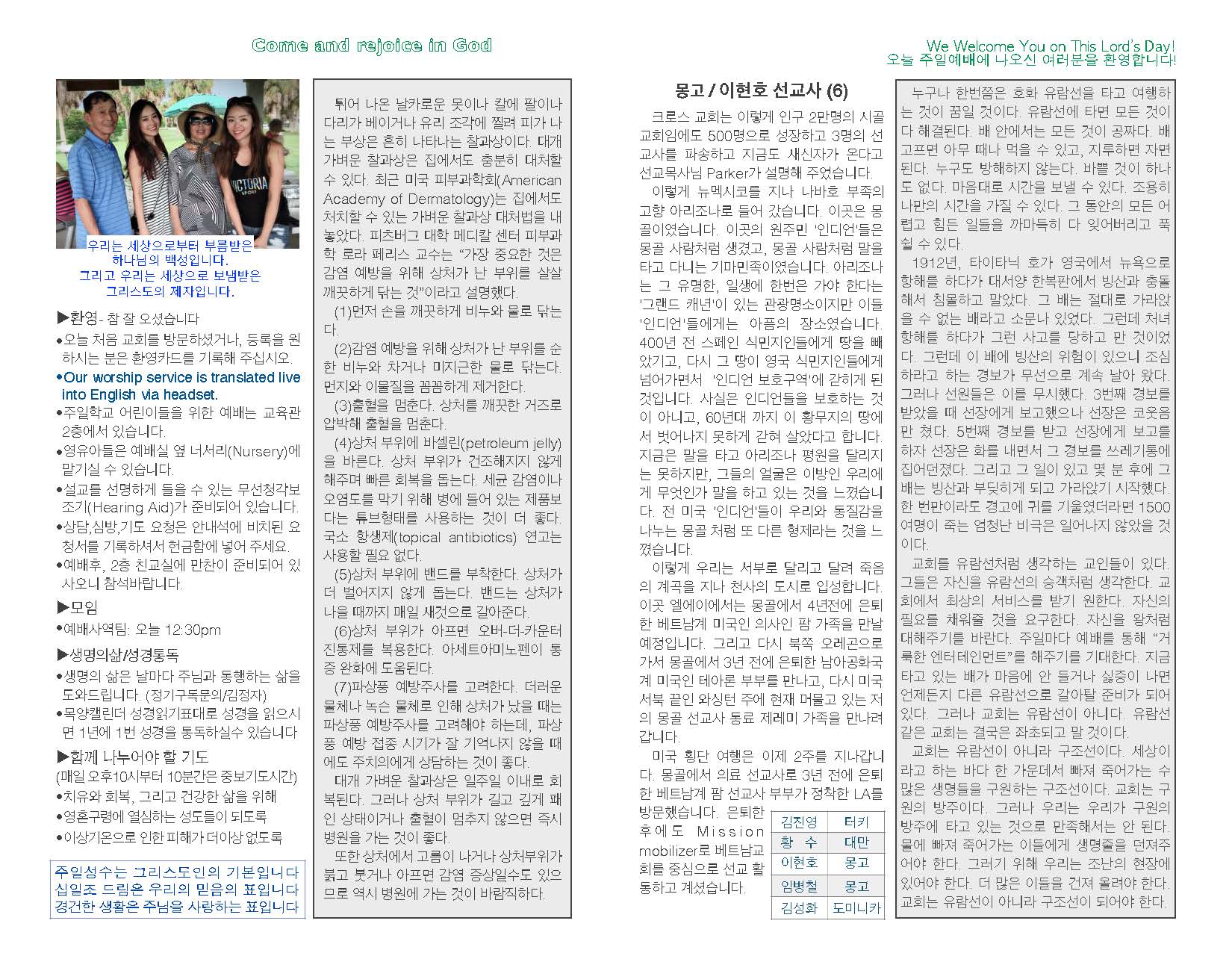 선교지소식 및 기도제목