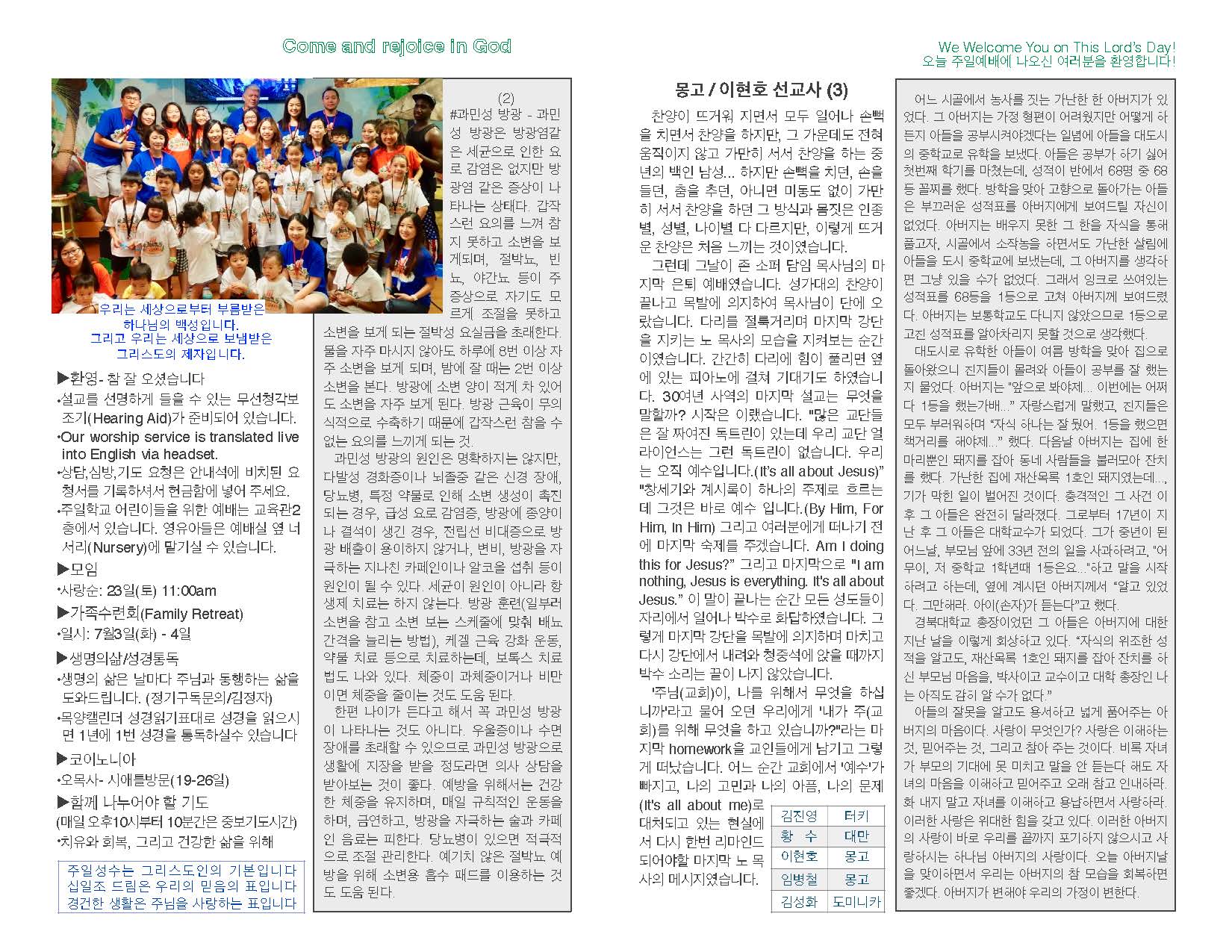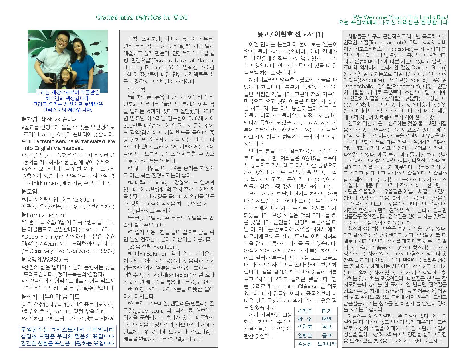 THE Good Korean Church of C&MA 3800 Lake Underhill Rd. Orlando.FL32803 / Tel:
