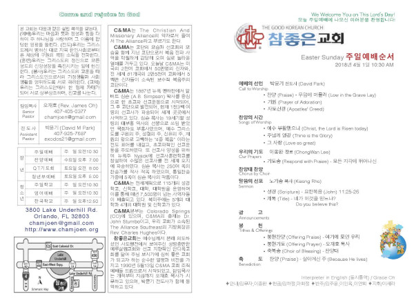 2018-04-01 교회 주보 페이지 정보 작성자 System Operator 댓글 0건 조회 5,635회 작성일 18-04-01 11:46 목록 본문 2018-04-01 교회 주보입니다. 이전글2018-04-08 교회 주보 18.04.09 다음글2018-03-25 교회 주보 18.03.28 댓글 0 댓글목록 등록된 댓글이 없습니다. 목록