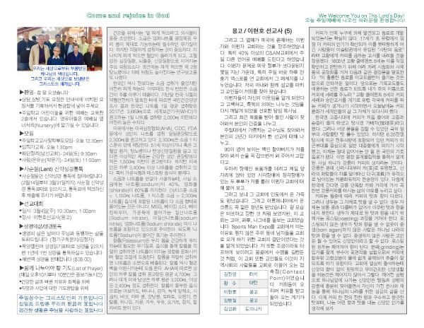 2018-02-18 교회 주보 페이지 정보 작성자 System Operator 댓글 0건 조회 5,334회 작성일 18-02-18 08:11 목록 본문 2018-02-18 교회 주보입니다. 이전글2018-02-25 교회 주보 18.02.25 다음글2018-02-11 교회 주보 18.02.13 댓글 0 댓글목록 등록된 댓글이 없습니다. 목록