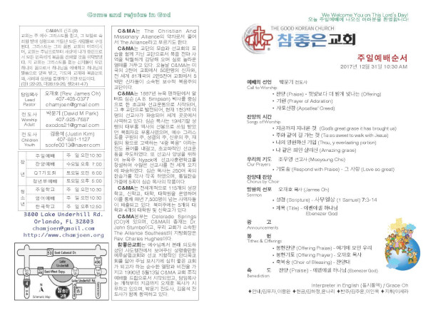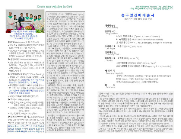 2017년 12월 31일 교회 주보 페이지 정보 작성자 System Operator 댓글 0건 조회 5,499회 작성일 18-01-02 14:10 목록 본문 2017년 12월 31일 교회 주보입니다. 이전글2018-01-07 교회 주보 18.01.22 다음글2017년 12월 24일 교회 주보 17.12.25 댓글 0 댓글목록 등록된 댓글이 없습니다. 목록