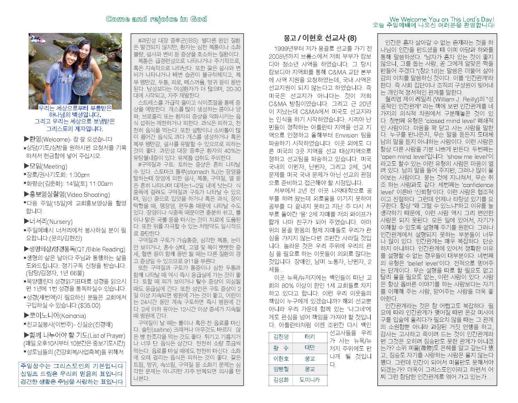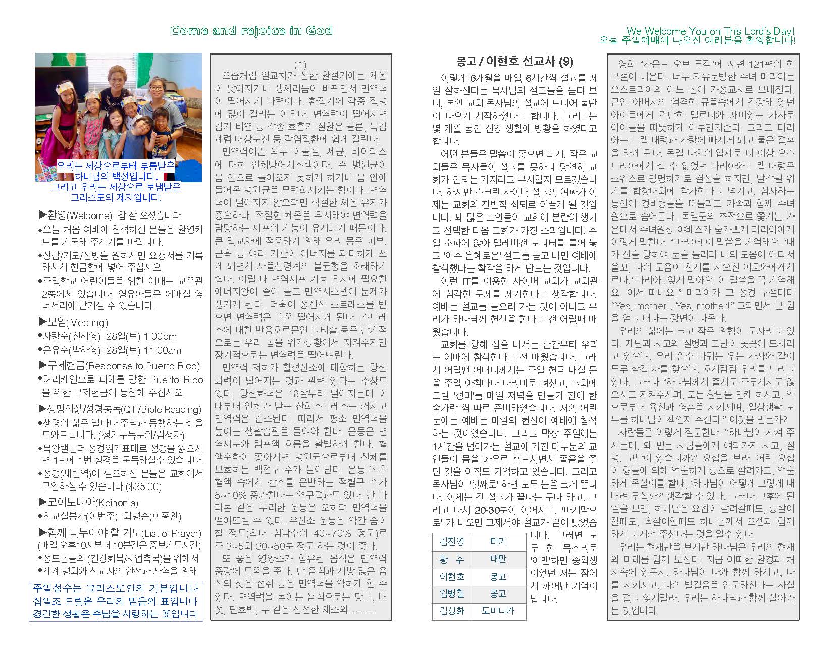 THE Good Korean Church of C&MA 3800 Lake Underhill Rd. Orlando.FL32803 / Tel: