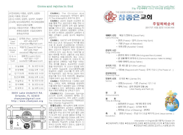 2017년 10월 22일 교회 주보 페이지 정보 작성자 System Operator 댓글 0건 조회 5,563회 작성일 17-10-29 11:22 목록 본문 2017년 10월 22일 교회 주보입니다. 이전글2017년 10월 29일 교회 주보 17.10.29 다음글2017년 10월 15일 교회 주보 17.10.15 댓글 0 댓글목록 등록된 댓글이 없습니다. 목록
