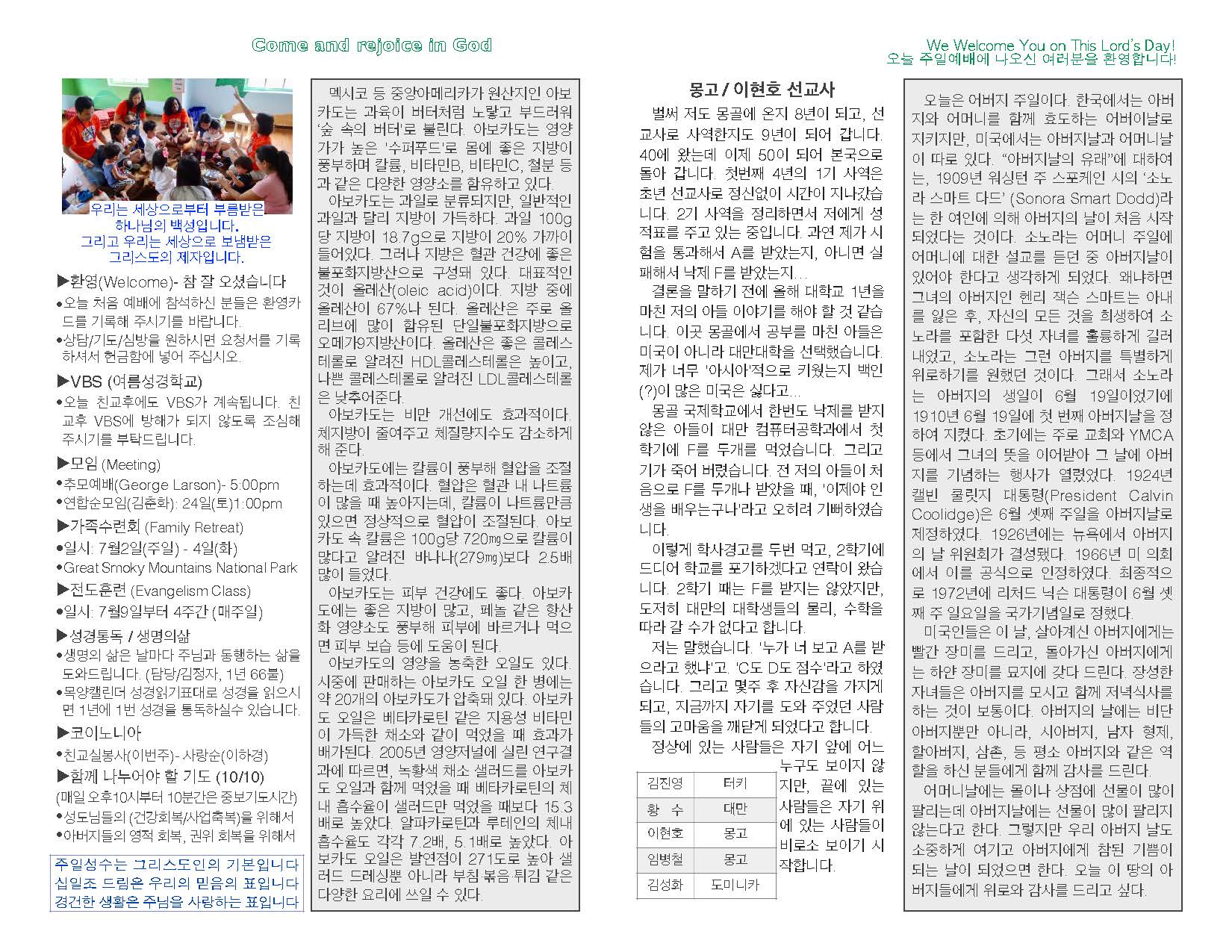 2017년 06월 18일 교회 주보