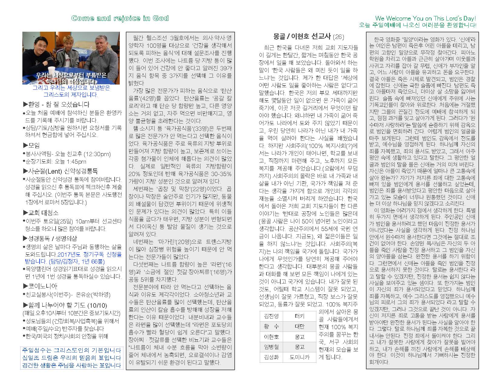 THE Good Korean Church of C&MA 3800 Lake Underhill Rd. Orlando.FL32803 / Tel: