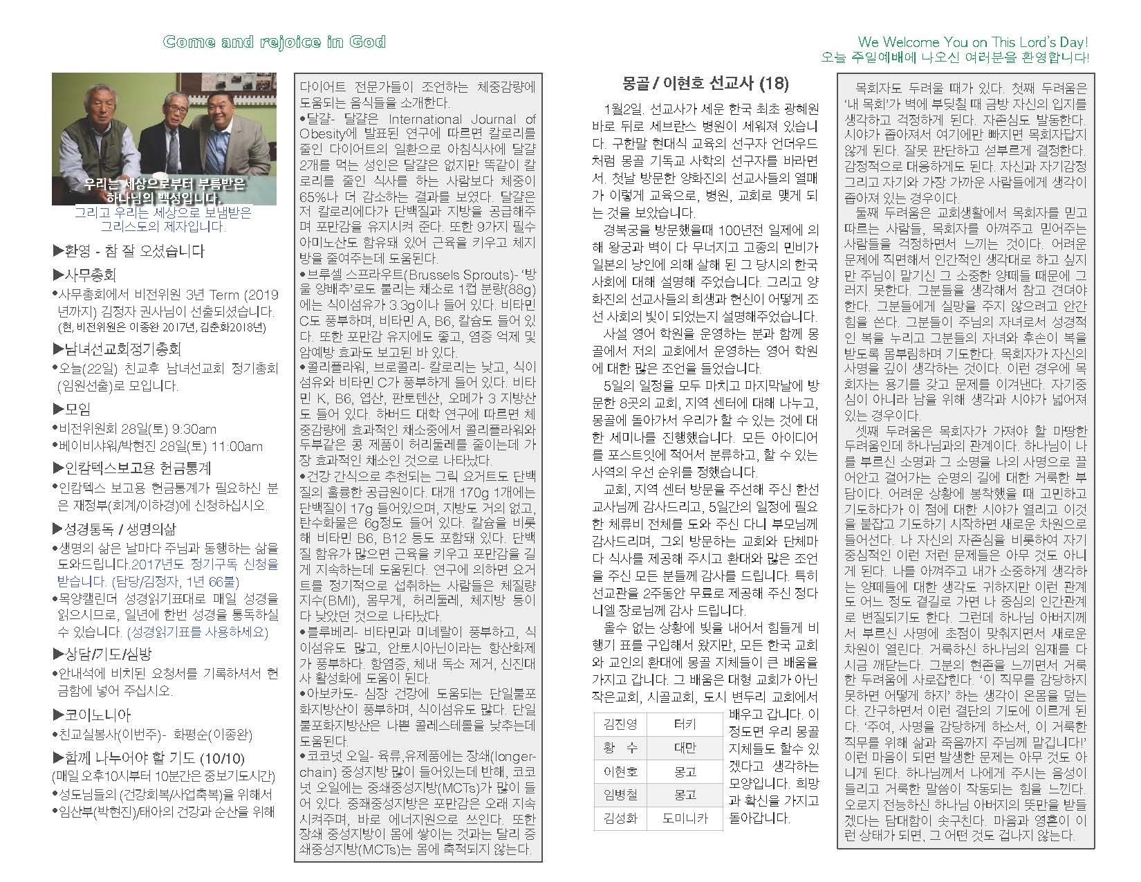 2017년 01월 22일 교회 주보