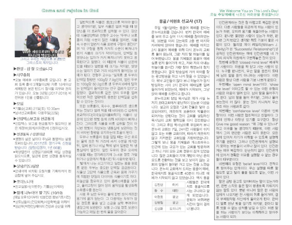 2017년 01월 15일 교회 주보 페이지 정보 작성자 박도엽 댓글 0건 조회 5,468회 작성일 17-01-20 11:42 목록 본문 2017년 01월 15일 교회 주보입니다. 이전글2017년 01월 22일 교회 주보 17.02.06 다음글2017년 01월 08일 교회 주보 17.01.20 댓글 0 댓글목록 등록된 댓글이 없습니다. 목록