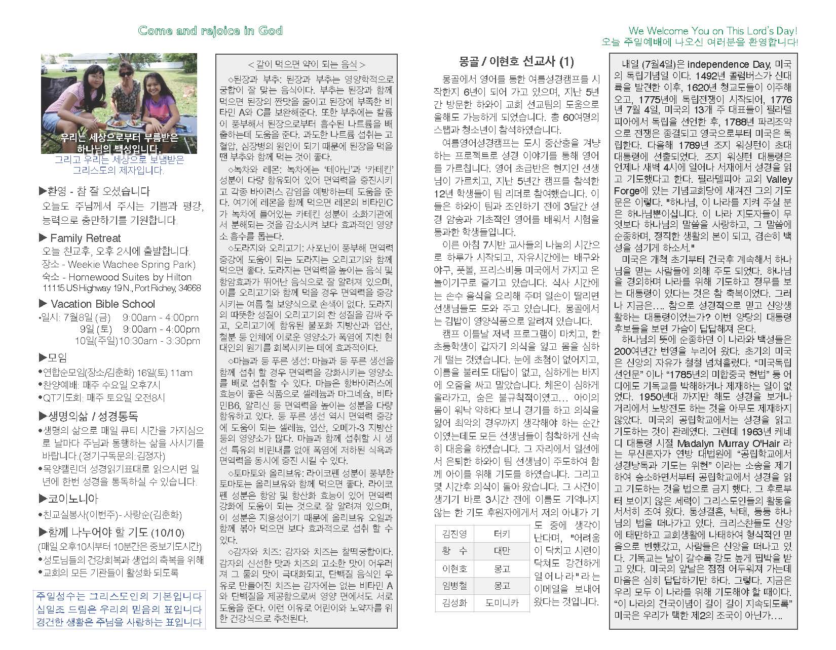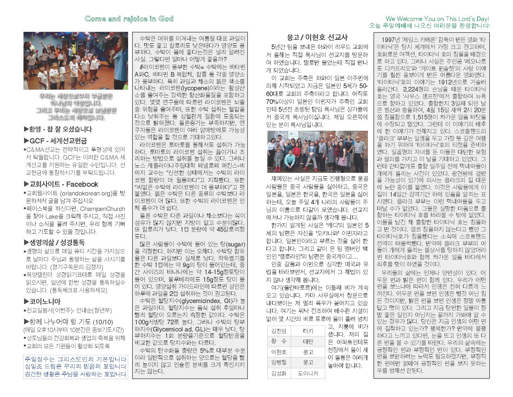 THE Good Korean Church of C&MA 3800 Lake Underhill Rd. Orlando.FL32803 / Tel: