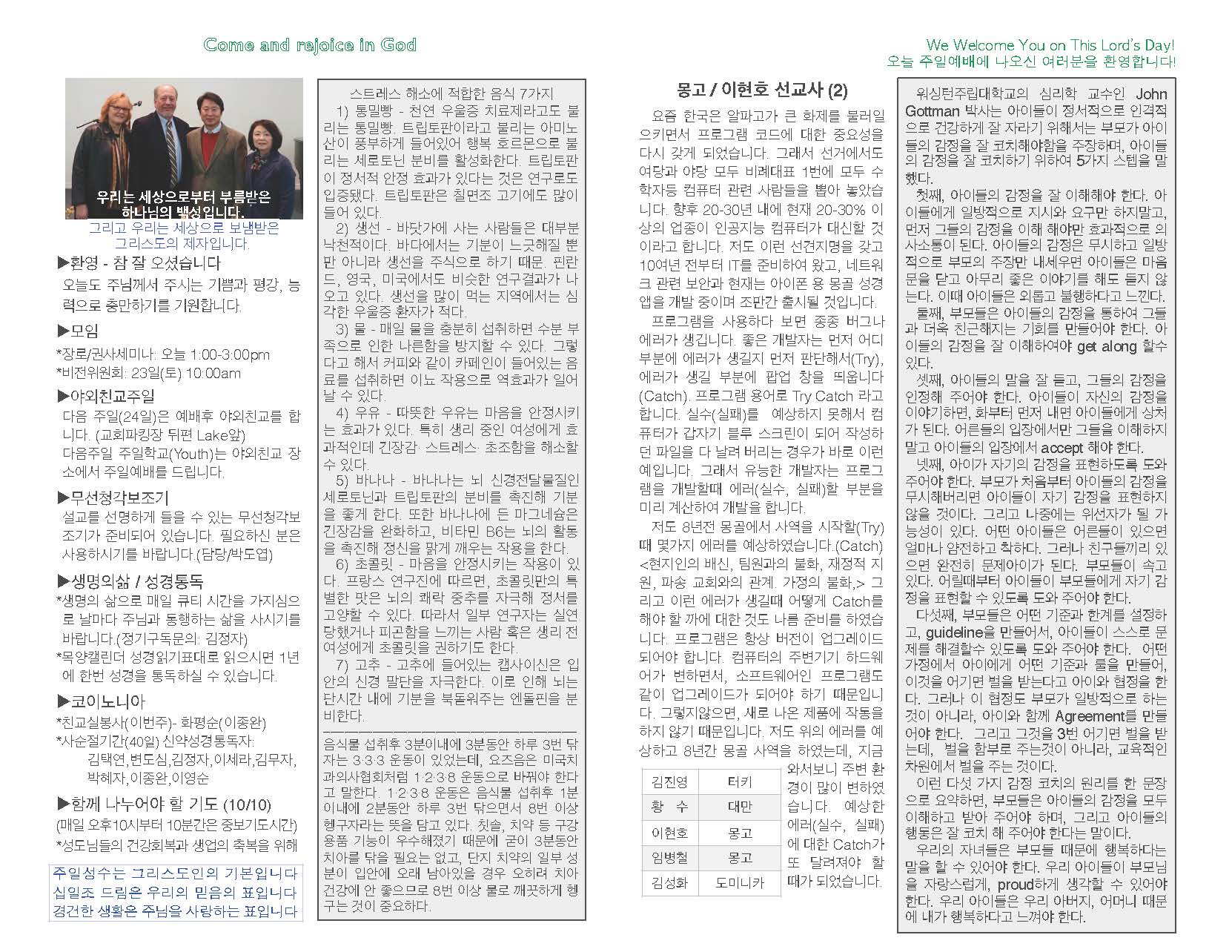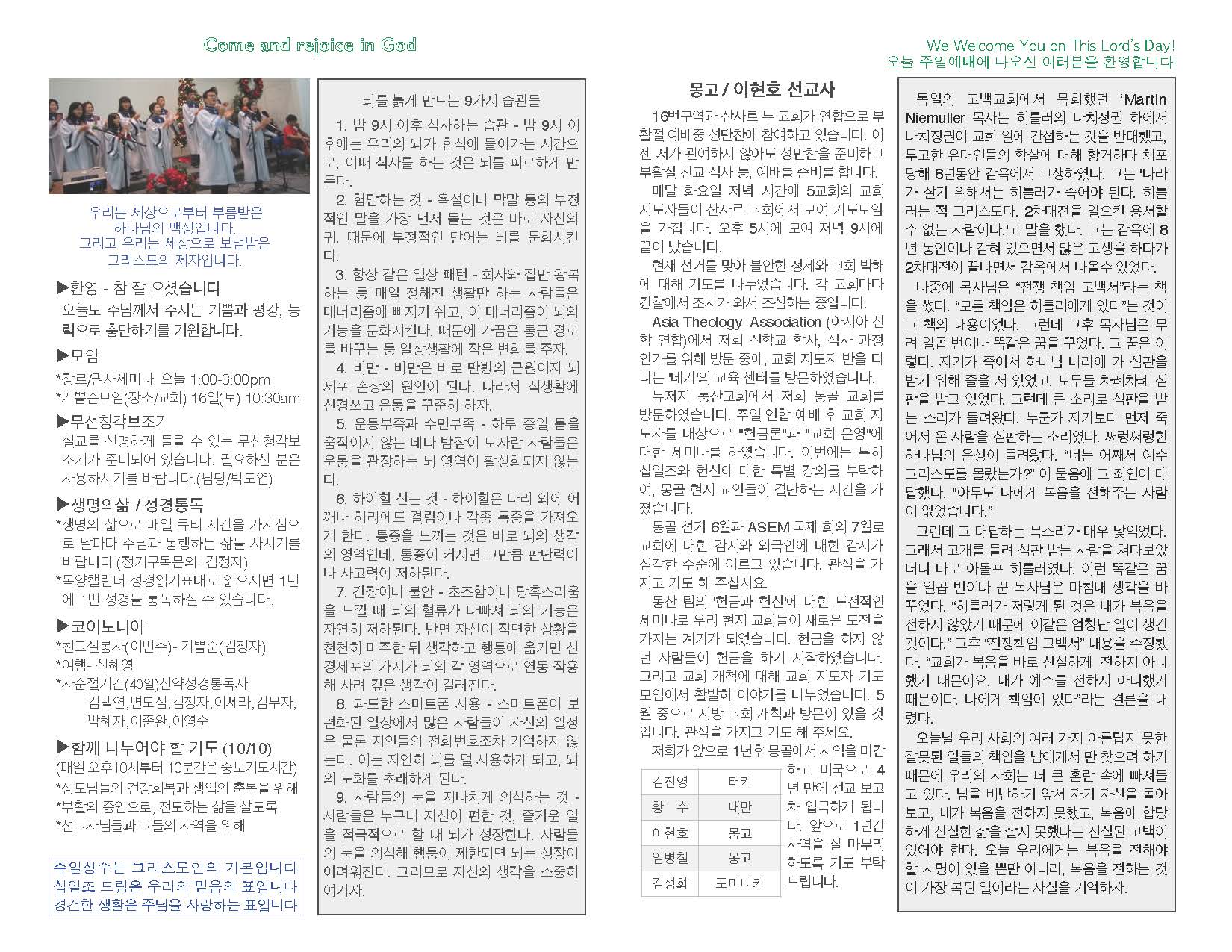 2016년 4월 10일 교회 주보