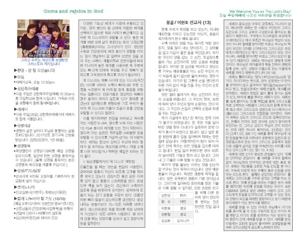 2016년 12월 18일 교회 주보 페이지 정보 작성자 박도엽 댓글 0건 조회 5,362회 작성일 16-12-19 15:28 목록 본문 2016년 12월 18일 교회 주보입니다. 이전글2016년 12월 25일 교회 주보 17.01.05 다음글2016년 12월 11일 교회 주보 16.12.11 댓글 0 댓글목록 등록된 댓글이 없습니다. 목록