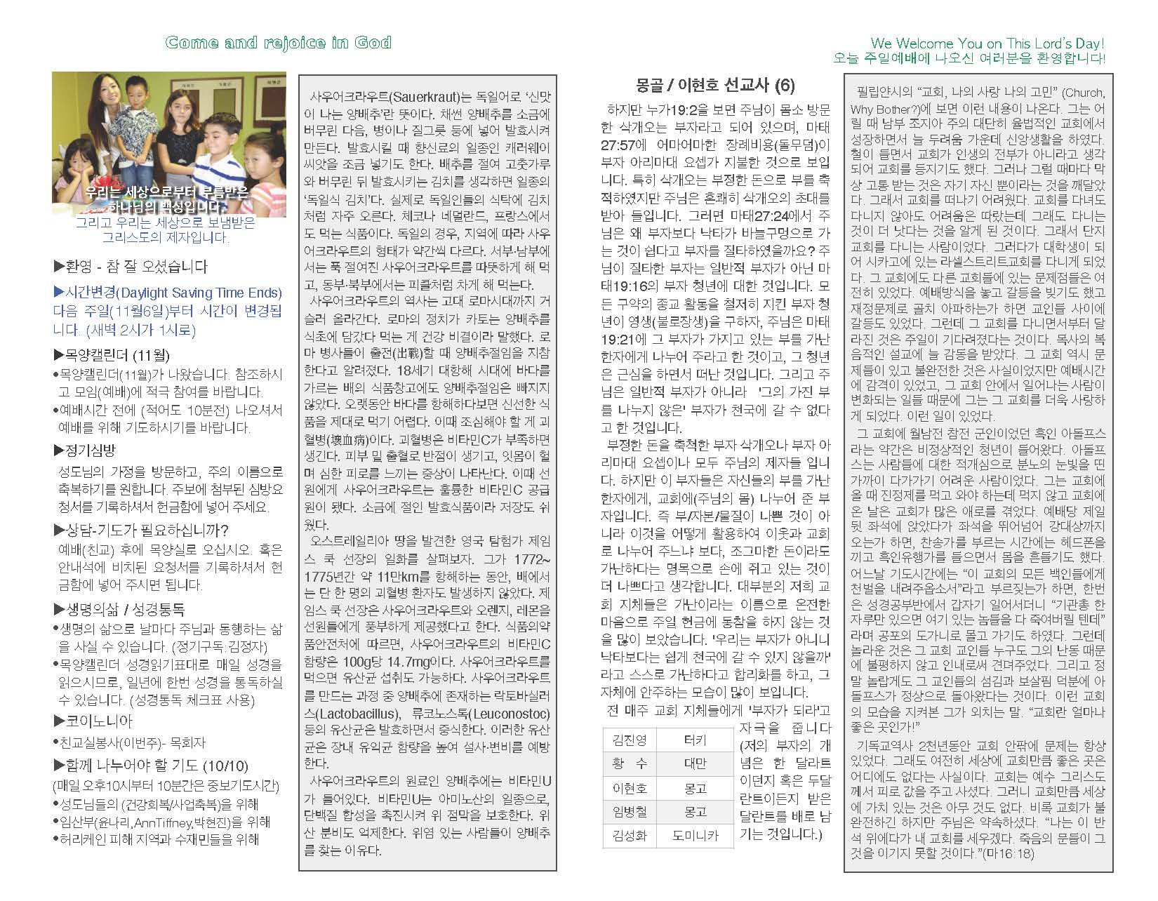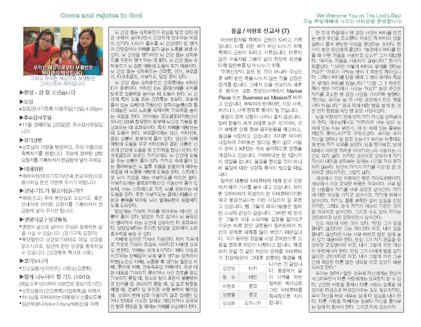 예배순서 및 광고