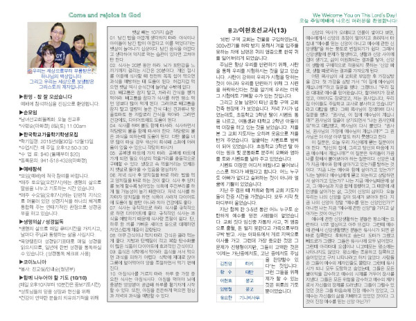 2015년 8월 02일 교회 주보 페이지 정보 작성자 박도엽 댓글 0건 조회 5,517회 작성일 15-08-08 15:48 목록 본문 2015년 8월 02일 교회 주보입니다. 이전글2015년 8월 09일 교회 주보 15.08.11 다음글2015년 7월 26일 교회 주보 15.07.27 댓글 0 댓글목록 등록된 댓글이 없습니다. 목록