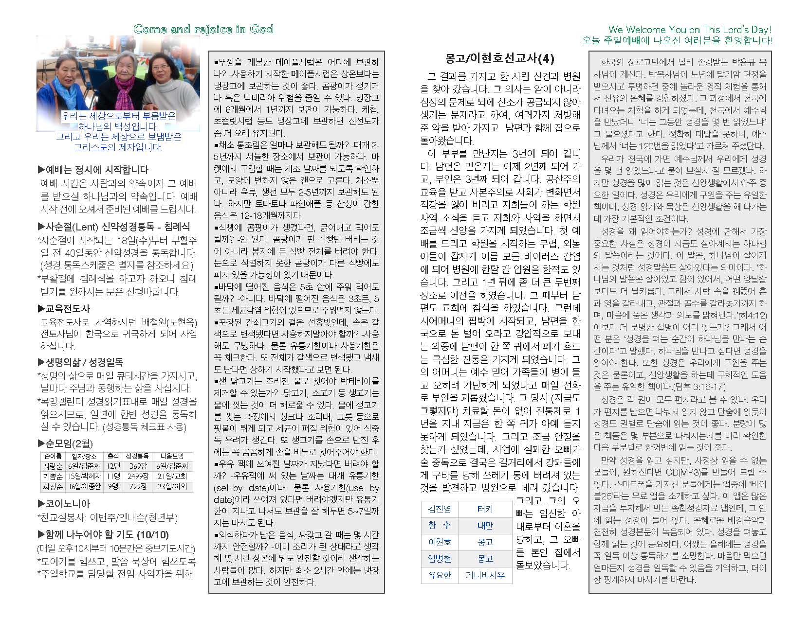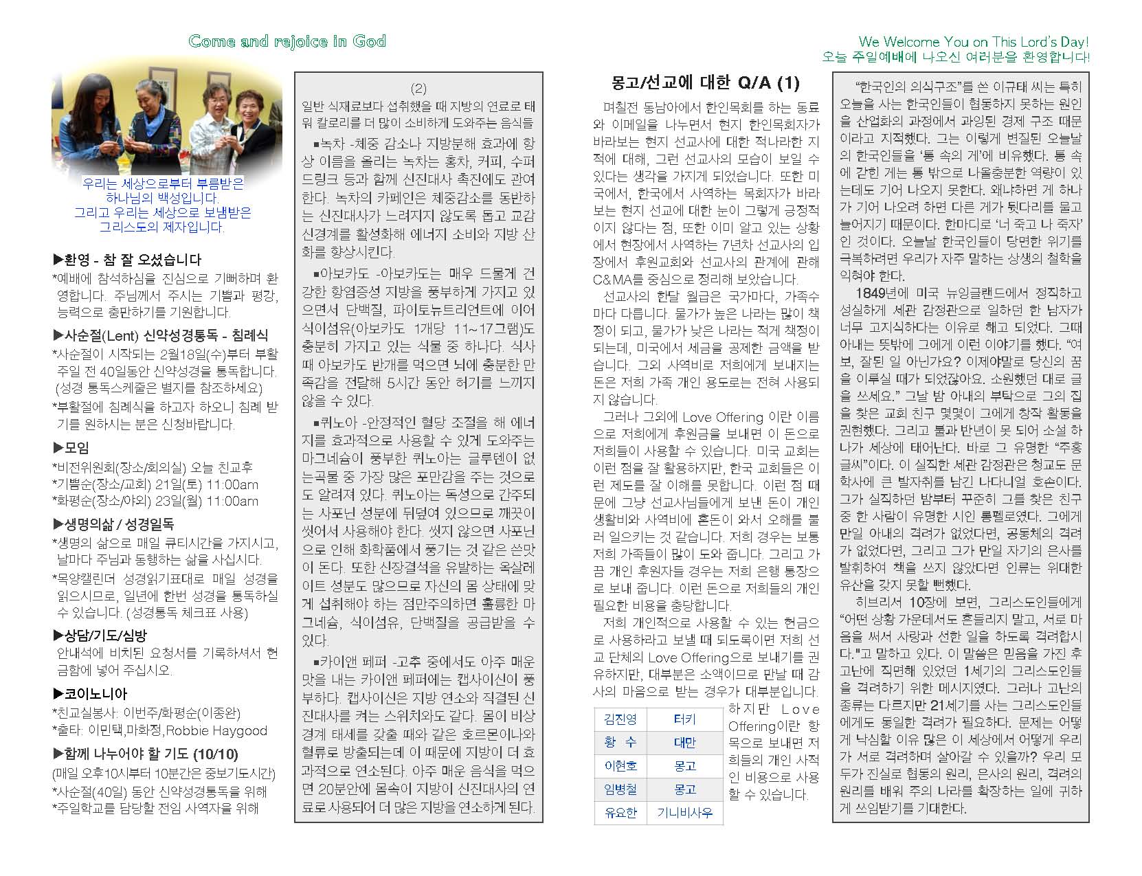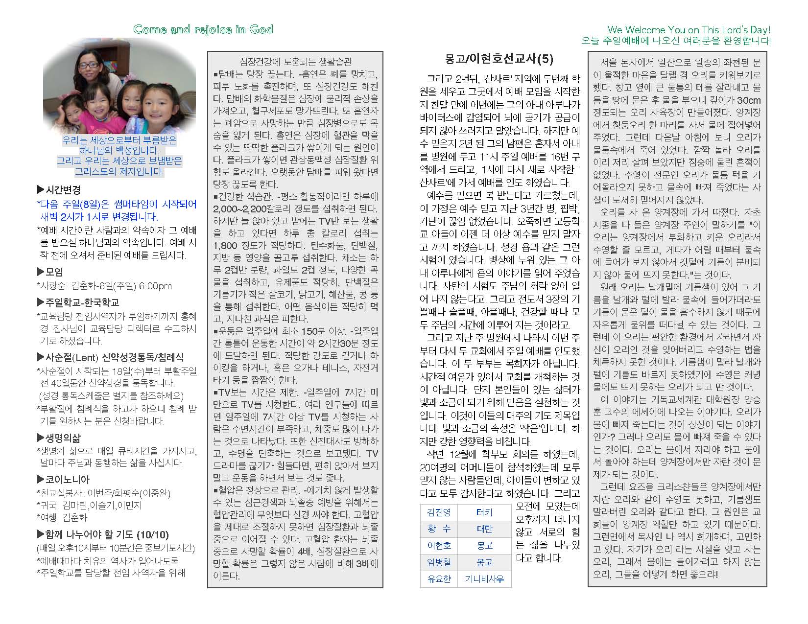 2015년 3월 15일 교회 주보