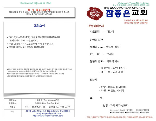 2023-10-01 참좋은 교회 주보 페이지 정보 작성자 참좋은교회 댓글 0건 조회 5,756회 작성일 23-10-02 05:12 목록 본문 2023-10-01 참좋은 교회 주보입니다. 이전글2023-10-08 참좋은 교회 주보 23.10.09 다음글2023-09-24 참좋은 교회 주보 23.09.25 댓글 0 댓글목록 등록된 댓글이 없습니다. 목록