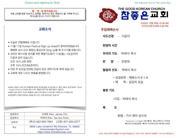 2023-10-29 참좋은 교회 주보 페이지 정보 작성자 참좋은교회 댓글 0건 조회 5,630회 작성일 23-10-30 04:38 목록 본문 2023-10-29 참좋은 교회 주보입니다. 이전글2023-11-05 참좋은 교회 주보 23.11.06 다음글2023-10-22 참좋은 교회 주보 23.10.23 댓글 0 댓글목록 등록된 댓글이 없습니다. 목록